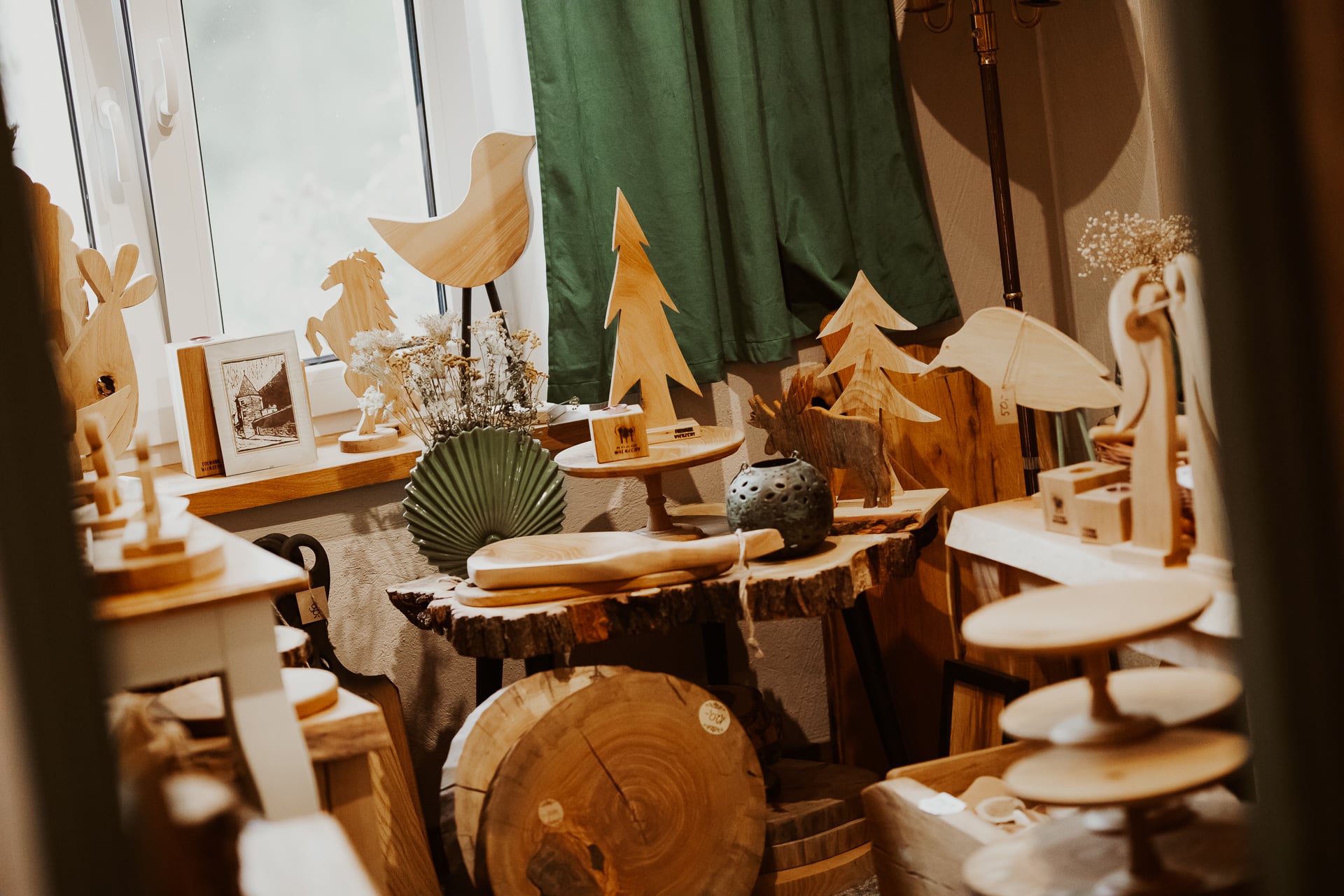 W naszym Sklepiku Folwarcznym znajdziesz wyjątkowe pamiątki i rękodzieło, które powstaje z miłości do natury, drewna i tradycji regionu.